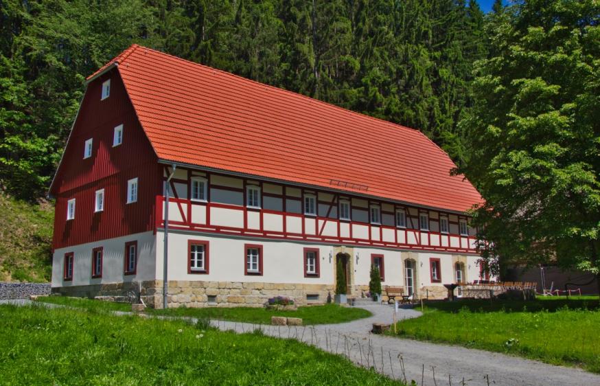 Ferienhof Grundmühle - Bauernhaus Sächsische Schweiz Gemütliche Unterkunft für bis zu 34 Personen im... 34 Betten 5 Doppelzimmer, 7 Mehrbettzimmer 1 Aufenthaltsraum Selbstversorgung ab 14,70 € pro Person