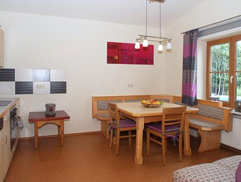Ferienwohnung für bis zu 8 Personen in 2 Schlafzimmern. Sehr gut eingerichtete Wohnküche, schöner großer Tisch für Spieleabende, kuschliges Wohnzimmer mit Pelletkachelofen und TV, modernes Bad, Gäste WC. Selbstversorgung. Auf Wunsch Verpflegung über die Berghütte möglich.