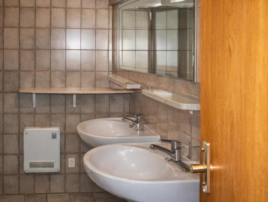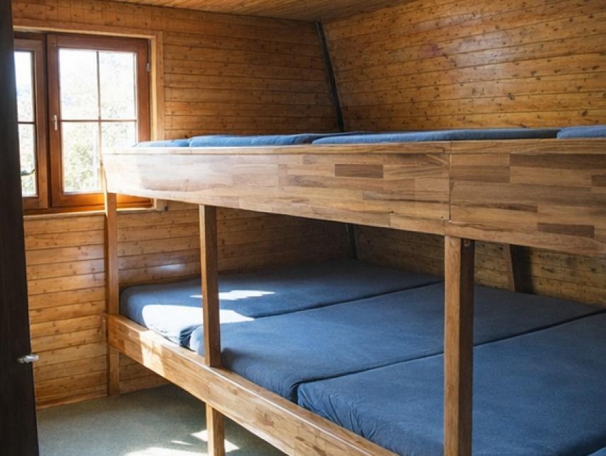 2 Zweibettzimmer, 1 Vierbettzimmer und 1 Zwölfbettzimmer. Bitte beachten: Um in die einzelnen Zimmer zu gelangen, muss man durch ein anderes Zimmer gehen.