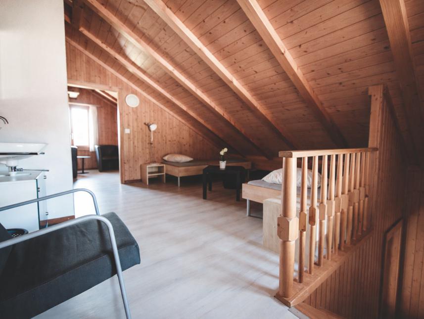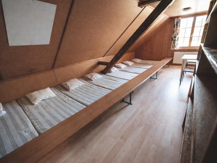 Der Aufenthaltsraum im Dachgeschoss kann bei Bedarf mit 4 Betten belegt werden.