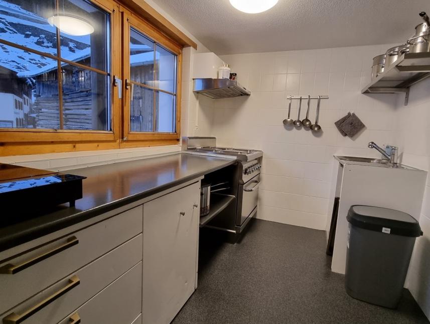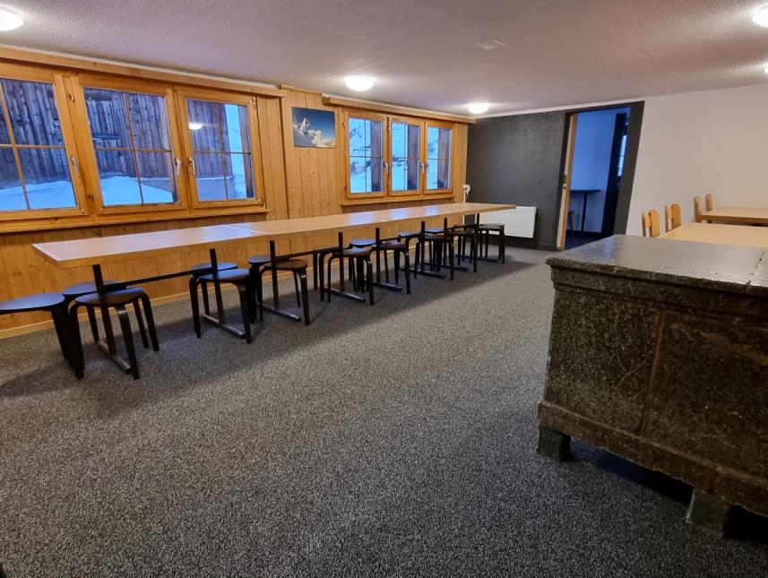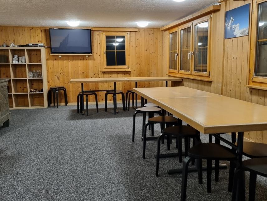 Gemütliches Ferienhaus mit 6 Mehrbettzimmer (2 Zimmer mit 2 Betten, 1 Zimmer mit 4 Betten, 1 Zimmer mit 6 Betten, 2 Zimmer mit 8 Betten), 1 grosser Aufenthaltsraum mit Beamer und DVD-Player, diversen Tischspielen und Specksteinofen, 2 Waschräume, 1 Einzeldusche und 1 Duschraum mit 5 Duschen und 3 Toiletten.