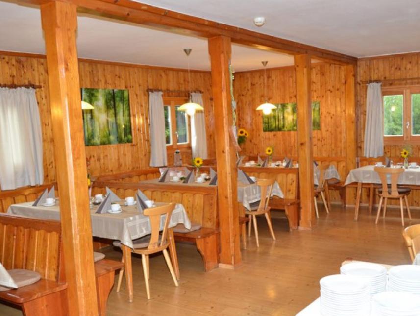 In unserer gemütlichen Gaststube finden bis zu 60 Personen Platz. Im zentralen Eingangsbereich befindet sich eine Theke aus Tannenholz.