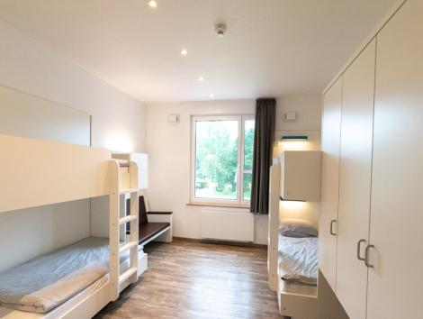 Unser Gruppenhaus bietet drei Einzelzimmer und elf Dreibettzimmer. Alle Zimmer sind mit Dusche/WC ausgestattet. Die Einzelzimmer verfügen über extra lange Betten. 220 cm für den erholsamen Schlaf. Für Menschen mit Beeinträchtigung sind drei der Dreibettzimmer mit einem Bad ausgestattet, das auch von Rollstuhlfahrern uneingeschränkt genutzt werden kann. Darüber hinaus befinden sich dort ein großer Gruppenraum und ein Besprechungszimmer, ein Meditationsraum und eine kleine Küche.