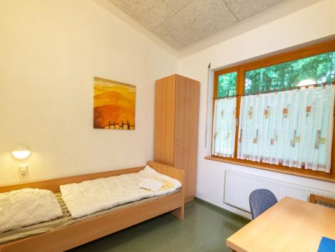 Moderne Einzel-, Doppel- u. Vierbettzimmer mit DU/WC und extra langen Betten (2,20 m). Zimmer für Rollstuhlfahrer vorhanden. 6 großzügige Gruppenräume mit aktueller Tagungstechnik, großer Meditationsraum, separater Freizeitbereich