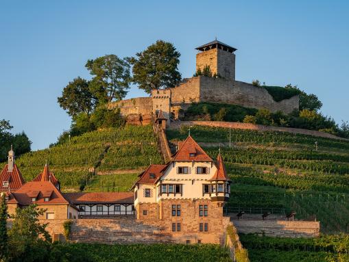 Das Schloss Beilstein liegt idyllisch an den Weinbergen unterhalb der stadtbildprägenden Burg Hohenbeilstein, die unter dem Adelsgeschlecht der Staufer im 12. Jahrhundert errichtet worden ist. Im Volksmund wird die Burg aufgrund des 23 Meter hohen Bergfrieds auch „Langhans“ genannt. Die Burg ist ein besonderes Ausflugsziel mit beeindruckendem Ausblick auf die ganze Region. Im Burggraben ist eine Falknerei zu Hause und der Burghof ist regelmäßig Kulisse für unterhaltsame Flugvorführungen. Außerhalb der Flugzeiten ist die Burg frei zugänglich. Im Innenhof befindet sich ein schöner Picknickplatz. Zudem laden ein Restaurant und ein Biergarten zum Verweilen ein.