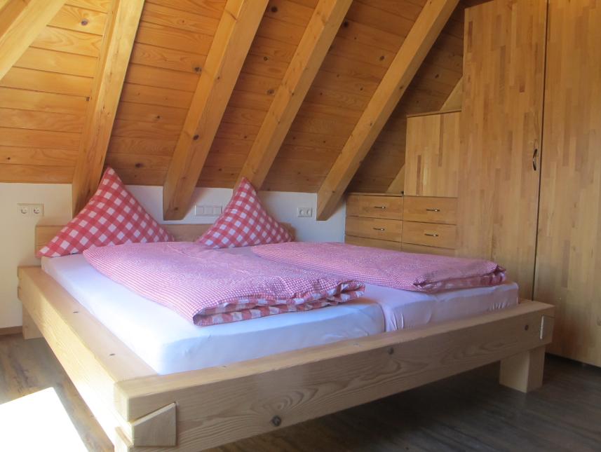 Im ersten Schlafzimmer stehen ein Doppelbett und ein Einzelbett (0,90 x 2m). Das zweite Schlafzimmer besteht aus einem Doppelbett und einem Kinderbett. Im Unterschied zur Auerhahn - Wohnung befindet sich im 3. Zimmer ein Wohn-/ Schlafraum mit komfortabler Schlafcouch. Hier gibt es drei Schlafmöglichkeiten (jeweils 0,80 x 2 m). In Wohn-/ Schlafraum befindet sich auch ein Schwedenofen.