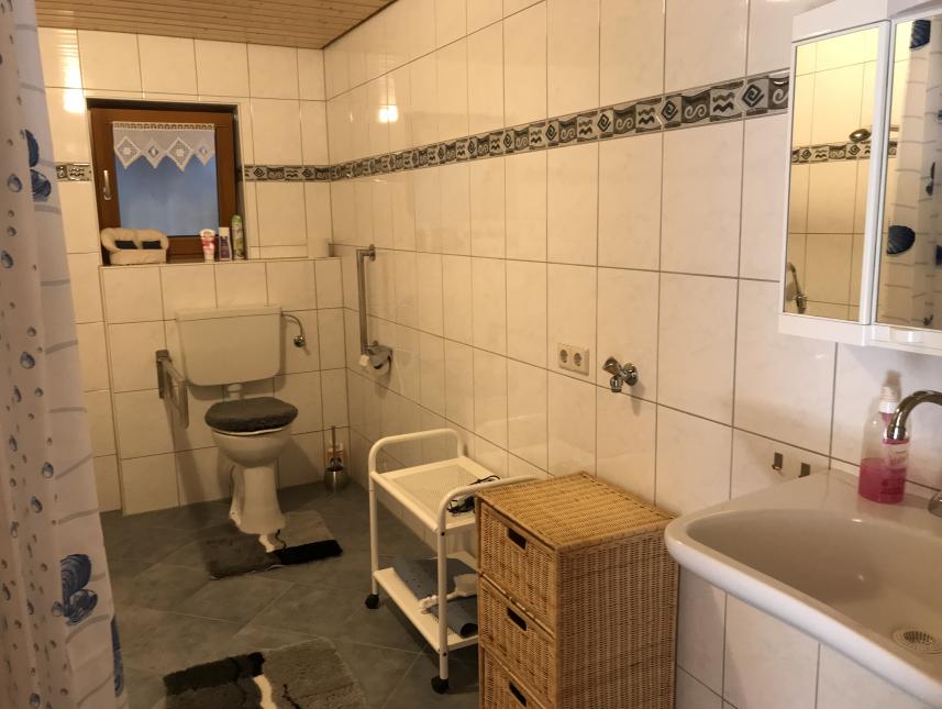 Sie ist ebenerdig begehbar und auch barrierefrei. Die Wohnung hat eine Küche, ein Bad mit Dusche und WC, zwei Schlafzimmer und ein Wohn/Schlafzimmer. Die Couch im Wohn/Schlafzimmer kann zu einem Bett mit den Maßen 1,45m x 1,95m umgebaut werden. In der Wohnung können 2-3 Rollstuhlfahrer untergebracht werden. Die Bauernhaus-Wohnung befindet sich im Hofgebäude direkt neben dem Kuhstall, dadurch kann man in einem Schlafzimmer die Kühe durchaus hören und die Wohnung duftet auch ein wenig nach Bauernhof :-) Mittendrin statt nur dabei! :-)