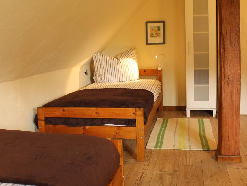 In der oberen Etage befinden sich die Zimmer mit je einem Duschbad.