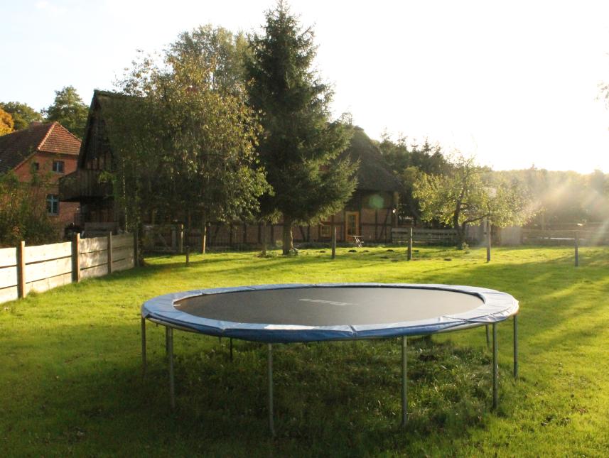 Ein großes Trampolin bringt Spaß für die Kinder und eine Pause für die Eltern.