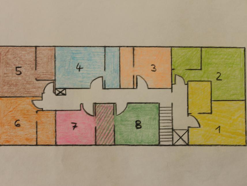 Zimmer 7 und 8 teilen sich ein Duschbad, welches sich in der Mitte befindet und von beiden Seiten begehbar und abschließbar ist. Art der Versorgung: