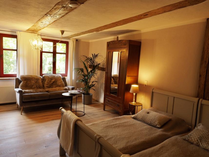 Fewo "Pferdestall" mit 12 Betten in fünf Schlafzimmern sowie drei schöne Ferienwohnungen mit jeweils 4 Betten in jeweils 2 Schlafzimmern. Eine Dachgeschosswohnung mit 8 Betten.