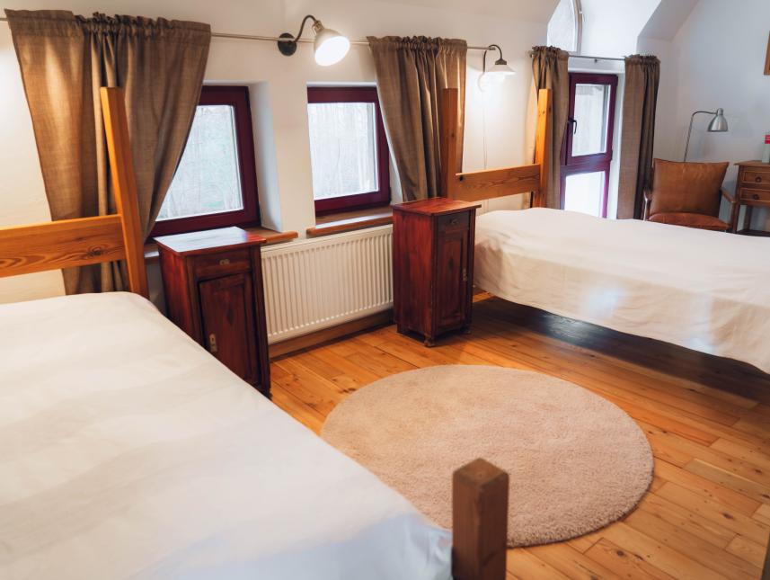 Man kann das gesamte Haus mieten oder einzelne Module für 4,8, 10, 12, 16, 20, 24 oder 32 Personen. Die Zimmer sind mit Holzböden, Vollholzmöbeln, umweltfreundlichen Materialien und in warmen Farben eingerichtet. Art der Versorgung: