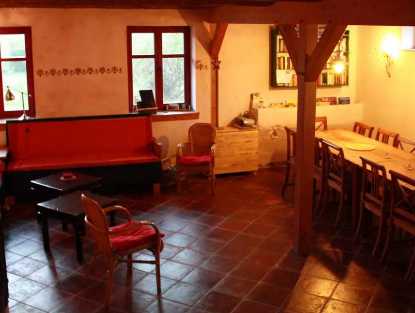 Ein schöner, heller Yogaraum kann ebenfalls angemietet werden.Grillplatz, 2 kleiner Kinderspielplätze,Kinderplanschbecken, 3 ha großer Garten mit altem Baumbestand, kostenlose Buchausleihe, Parkplätze, Nichtraucherhaus, Leihräder (gegen Gebühr).