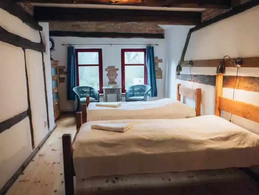 Pferdestall mit 12 Betten in fünf Schlafzimmern sowie drei schöne Ferienwohnungen mit jeweils 4 Betten in jeweils 2 Schlafzimmern.