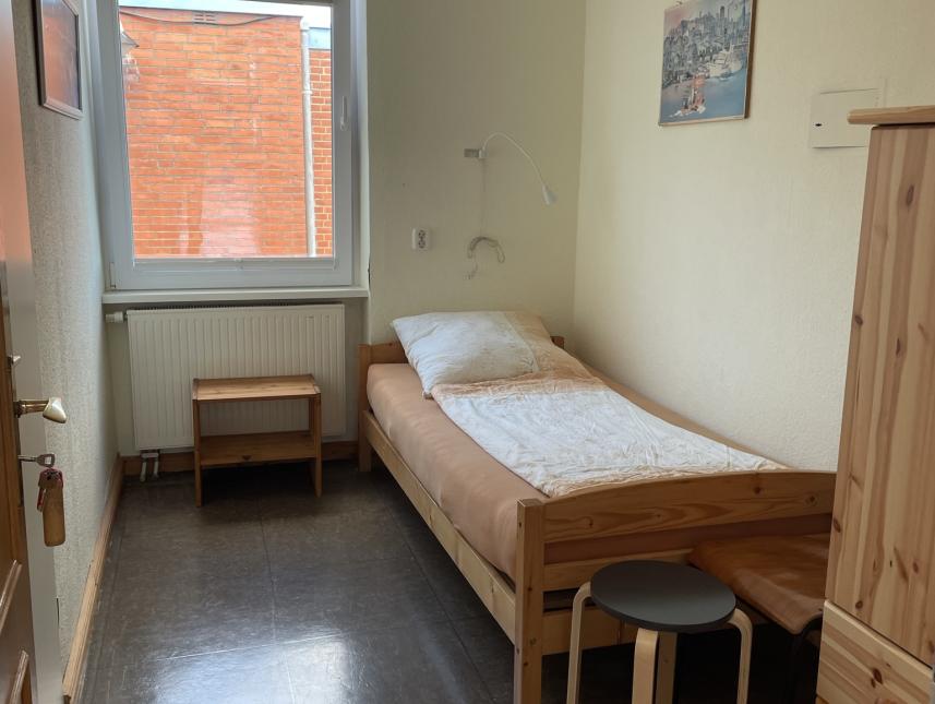 Die Begleitpersonen werden in Einzelzimmern mit angeschlossenem Bad untergebracht.