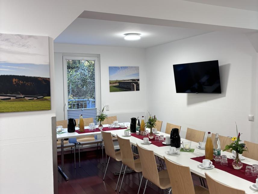 Die richtige Unterkunft für alle Gruppen, die einen unabhängigen und ungestörten Aufenthalt in der Eifel schätzen und sich selbst versorgen möchten, großer Gruppen- u. Speiseraum mit Balkon.