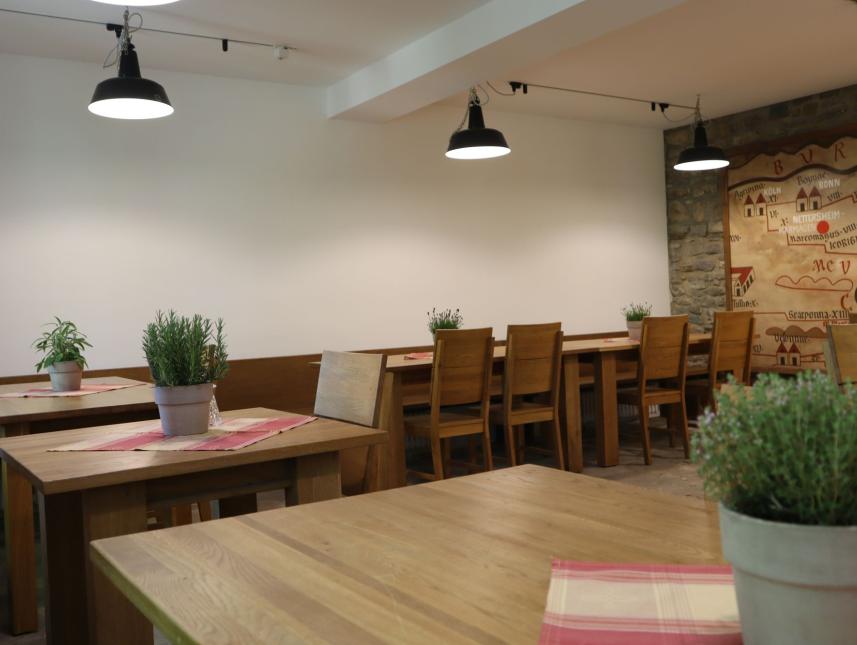 Mahlzeiten können im Jugendgästehaus Nettersheim eingenommen werden. Fragen Sie im Naturzentrum Eifel nach.