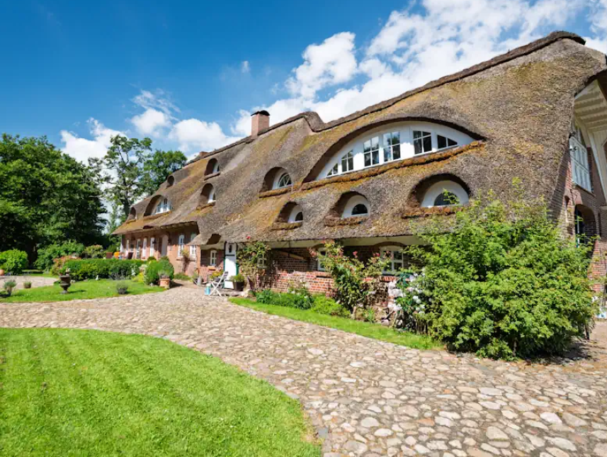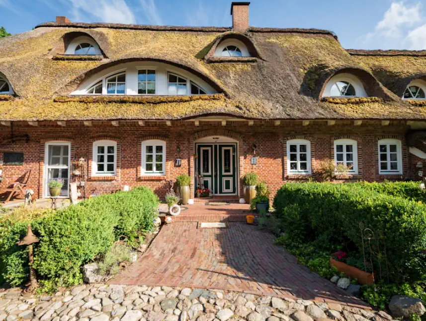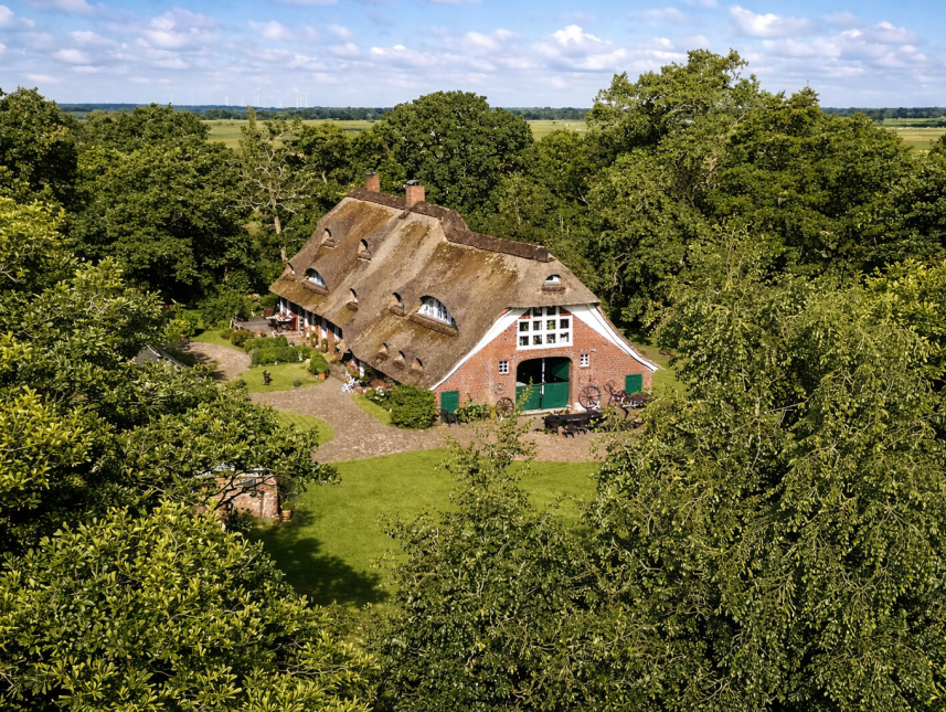 Der Erlenhof liegt einsam zwischen Wiesen, Seen und Wäldern im Sietland- ein Paradies, nicht nur für Störche, Wildgänse und Kraniche. Weiße und rosafarbene Meere von Kirsch- und Apfelblüten und gelben Raps- und Löwenzahnwiesen im Frühling, und grüne Wiesen und Kornfelder im Somm
