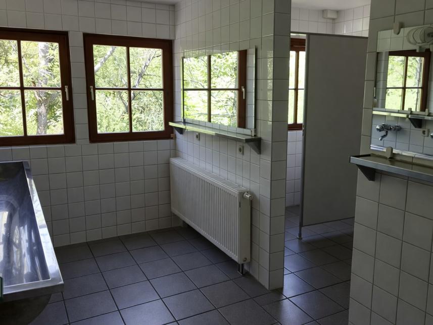 Unser Waldheim bietet diverse Gruppenräume mit Stockbetten, Aufenthaltsraum, Küche und Waschräume. In der "Liegehalle" (separates Gebäude) ist auf 17x10 m Platz für Gemeinschaftsveranstaltungen wie Singen, Vorführungen oder Spiele bei schlechtem Wetter (nicht heizbar). Im barrierefreien Obergeschoss befinden sich 6 Gruppenräume, davon 4 mit Stockbetten für insgesamt 32 Personen, 1 Büro, die Küche, 2 große Waschräume mit je 1 Dusche, WC und Behinderten-WC. Die Küche ist ausgestattet mit einem großen 4-Plattenherd, einer Kaffeemaschine, Kühlschrank, Gefrierschrank und Spülmaschine. Zubehör wie Geschirr, Besteck usw. ist vorhanden. Geschirrtrockentücher und Spülmittel sind mitzubringen. 3-teilige Bettwäsche, bestehend aus Kissen mit Überzug, Decke mit Überzug sowie Leintuch vermietet das Haus zu einem Unkostenbetrag von 10,00 €. Schlafsäcke sind nur mit Benutzung eines Bettlakens erlaubt. WLAN-Zugang ist im Haus vorhanden.