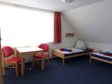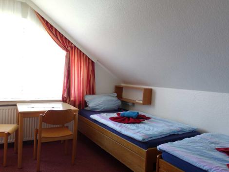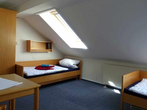 Einzel-, Doppel- und Dreibett-Zimmer (mit Etagenduschen und -toiletten) sowie drei Aufenthaltsräume und eine großzügige Küche. 31 Betten verteilen sich auf 17 Zimmer und 3 Etagen (EG: 3 Betten, OG: 15 Betten, DG: 3 Betten, 3 Tagungsräume).