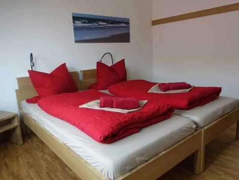 29 Betten in 14 großzügigen Zimmern auf 2 Ebenen (EG: 14 Betten, OG: 15 Betten, 2 Tagungsräume).