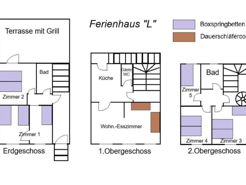 FH "L" ca. 150m², 5 Schlafzimmer (Boxspringbetten), 2x Dusche/WC & Waschbecken. Küche mit Ceranherd & Umluftbackofen, Spülmaschine, Toaster, 2x Kaffeemaschine.