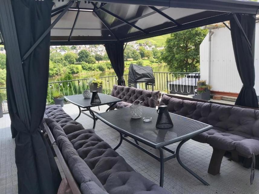 Die Ferienanlage zwei nebeneinanderliegende Häuser mit ca. 350m² verbunden über Moselbalkone, direkt an der Mosel gelegen. Überdachter Moselbalkon, 50m² Moselterrasse mit Grill und Garten mit Grill laden zum gemütlichen Zusammensein ein.