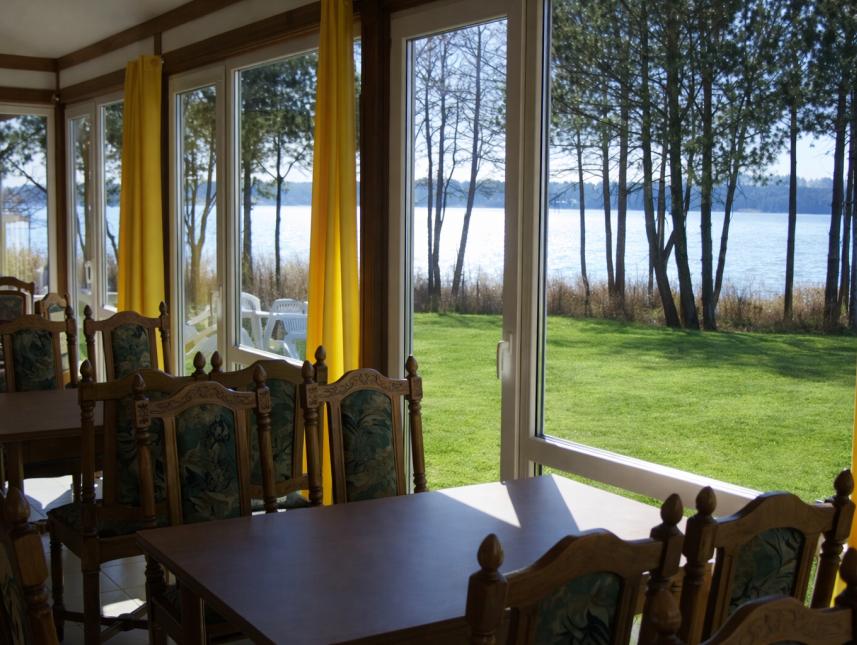 1 Ferienhaus „Bungalow am See“ mit 5 Schlafzimmern, Wintergarten und überdachter Terrasse für bis zu 12 Personen.