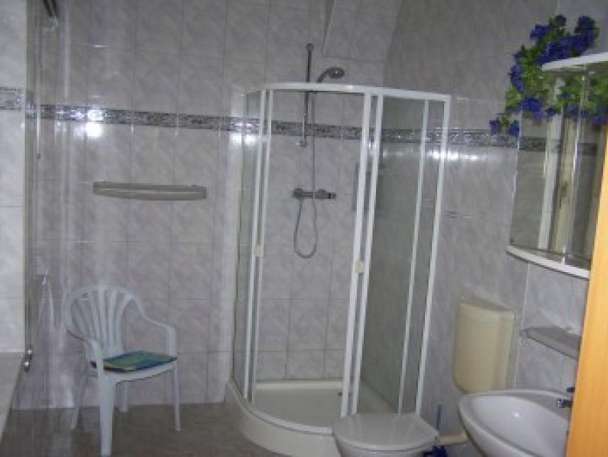 Voll ausgestattete Küche mit Geschirrsp, Kühlschr, 4-Plattenherd, Backofen, Mikrowelle, Wasserk., Toaster, Kaffeemasch. und alle Kochutensilien. Das große Duschbad besteht aus Waschtisch, WC und Runddusche. Das Schlafz. im Erdgeschoß hat 1 Doppelbett, Nachttische, Spiegel und 1 Kleiderschrank. Im Obergeschoß befindet sich 1 Bad mit WC, Waschtisch und Badewanne mit Duschfunktion. Die 3 Schlafzimmer haben Kleider- und Nachtschränke und sind ausgestattet mit Nr.2: 1 Doppelbett, Nr.3: 1 Doppel & 2 Einzelbetten, Nr.4: 1 Doppelbett + Aufbettung. Art der Versorgung: