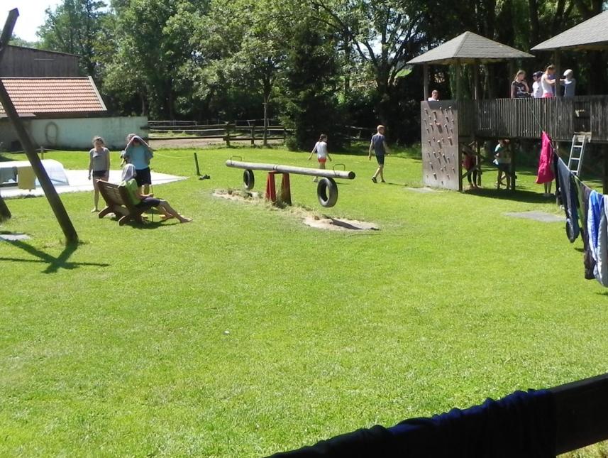 Unmittelbar am Haus lädt ein großes Gelände zum Spielen und Toben ein. Ein Tummelplatz mit Spielgeräten und Planschbecken, der Fußballplatz, ein Lagerf