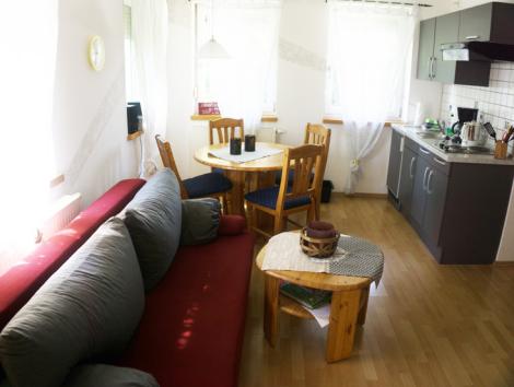Jede Ferienwohnung verfügt über einen Ess- und Wohnbereich.