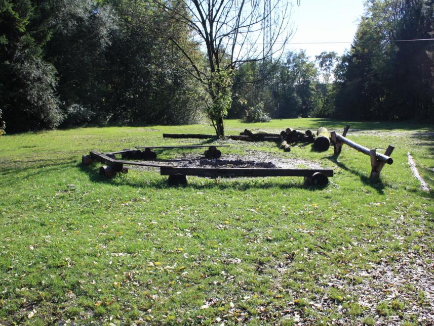 Die von Bäumen umsäumten Hütten gruppieren sich um eine Freifläche, die zum zusammen sitzen, spielen, grillen… einlädt. Das Hüttendorf bildet eine eigene Einheit auf dem Gelände. Belegergruppen können hier ihr eigenes Programm und ihre Aktivitäten entwickeln.