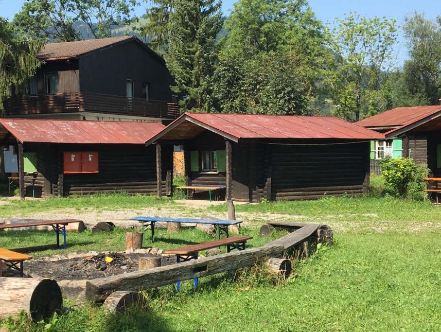 Besonders beliebt bei Kindern und Jugendlichen: das rustikale Hüttendorf. Bis zu 47 Personen können hier unkompliziert und naturnah auch im Winter übernachten. Zwei Blockhäuser mit vier 4-Bett-Zimmern, vier Blockhütten mit je vier Betten und das „Forsthaus“ mit zwei Betreuerzimmern und Aufenthaltsraum sind beizbar und daher ganzjährig nutzbar. Im Forsthaus sind auch die Sanitäreinrichtungen zentral angeordnet.