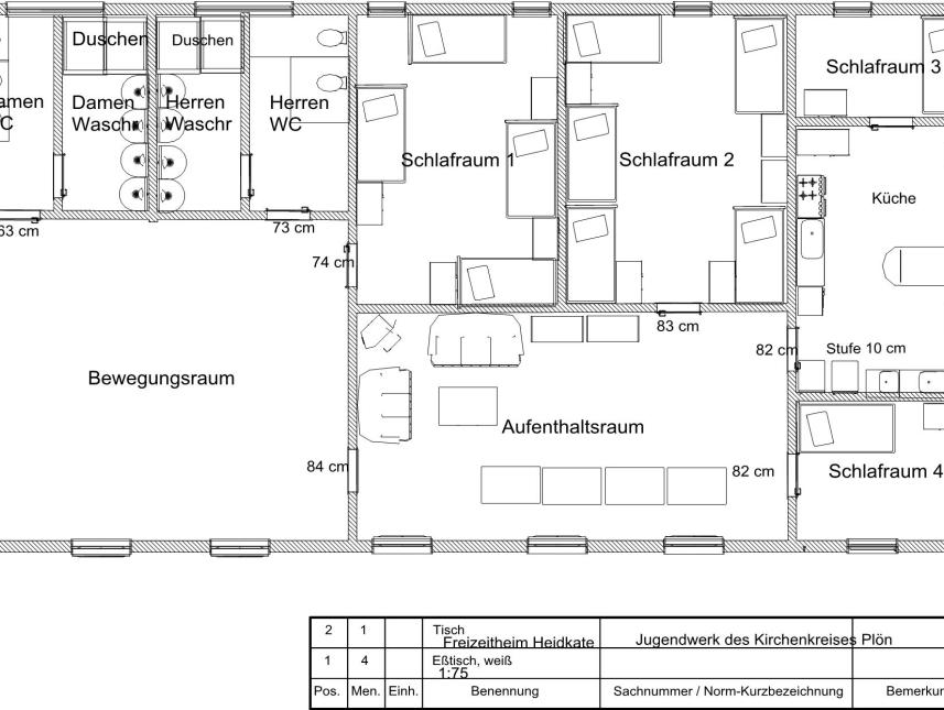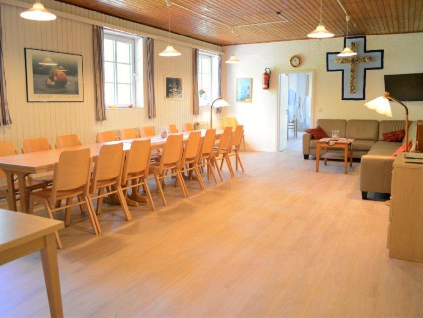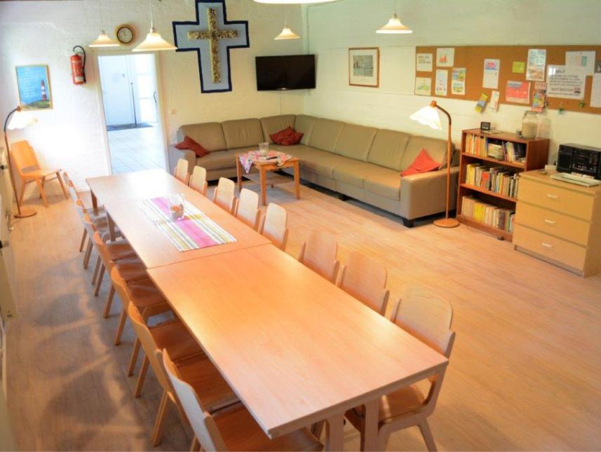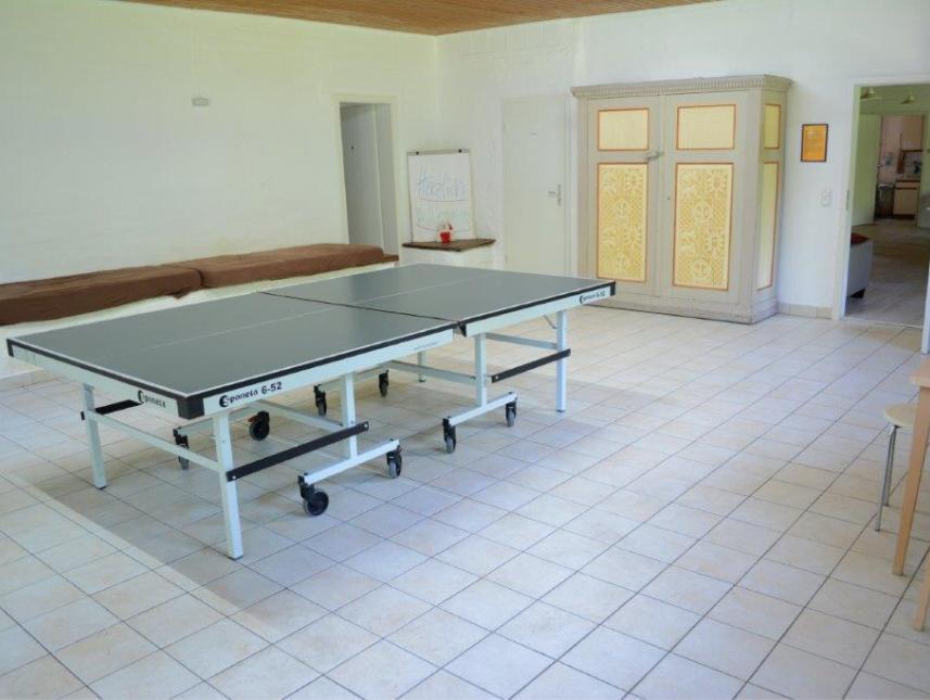 Das Freizeitheim verfügt über 2 Gruppenschlafräume mit 8 bzw. 10 Etagenbetten und 2 Zimmer mit je 2 Schlafplätzen in Etagenbetten - entspricht einer Gesamtkapazität von 22 Betten, zwei sanierten Dusch-/Waschräume mit WC´s, einen Tagesraum, eine große Diele, eine voll ausgestattete Küche mit Herd, Backofen und Geschirrspüler, Bewegungsraum mit Tischtennisplatte und einem Aufenthaltsraum mit Fernseher. Das Freizeitheim ist einfach und rustikal eingerichtet. Ganzjährige Belegung möglich.