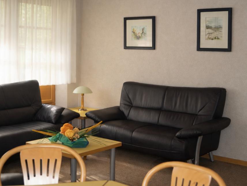 Im Hauptgebäude befinden sich: Der Tagungsraum für 80 Personen, Seminarraum für 30-40 Personen, Cafeteria für 25 Personen, Speisesaal, Raum der Stille, WC, Küche und Büro. Jedes der drei Häuser bietet: 5 Doppel- (Vierbett-) Zimmer mit Sitzgruppe, 1 Einzel-(Doppel-) Zimmer, 1 Gruppenraum (kann auch als Mehrbettzimmer genutzt werden!) und eine Teeküche. Alle Zimmer sind mit Bad (Dusche, WC) ausgestattet und verfügen über Wlan. Ein Zimmer pro Haus ist für Rollstuhlfahrer geeignet. Zusätzlich stehen zur Verfügung: Tischtennisraum, Bastel- und Werkraum, Kinderspielplatz, Rasenfläche und Volleyballfeld, Billardtisch, Tischkicker, 2 Klaviere, Kiosk, Tageslichtprojektor und 2 Beamer.