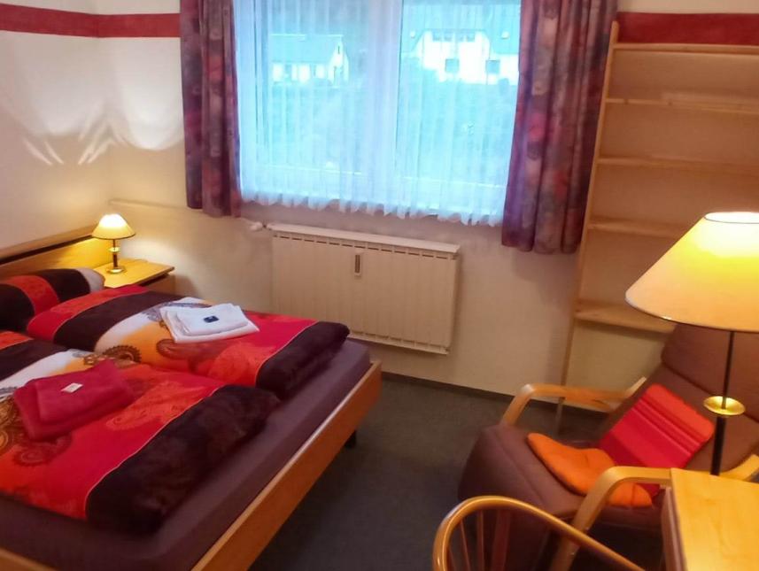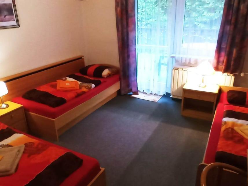 23 Schlafzimmer (Doppelbett-, Zweibett-, Dreibett- und Einzelbettzimmer, sowie zwei 2-Raum-Familienzimmer (4 Personen) und ein Babybett, jedes Zimmer mit eigener Dusche und WC