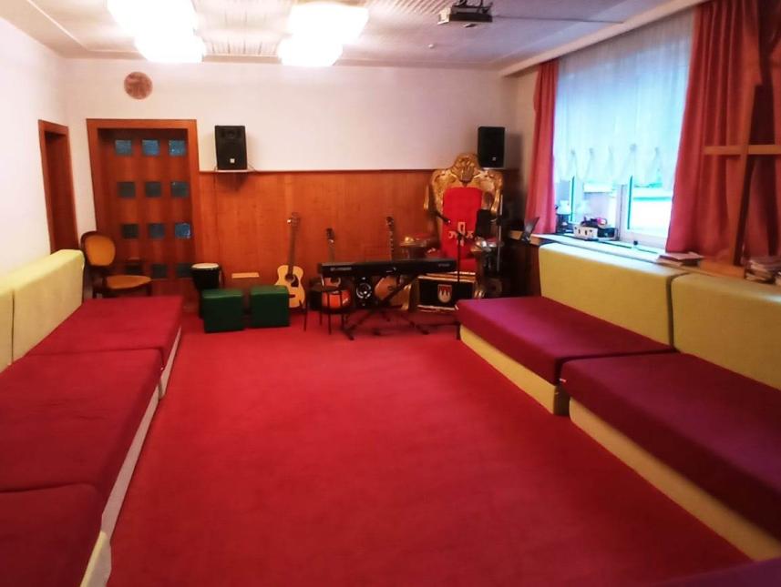gemütliches Kaminzimmer (ca. 50 P.), Seminarraum mit Tischen (ca. 40 P.), Seminarraum 2 (ca. 10 P.), Gebetsraum (ca. 25 P.), Bücherei,