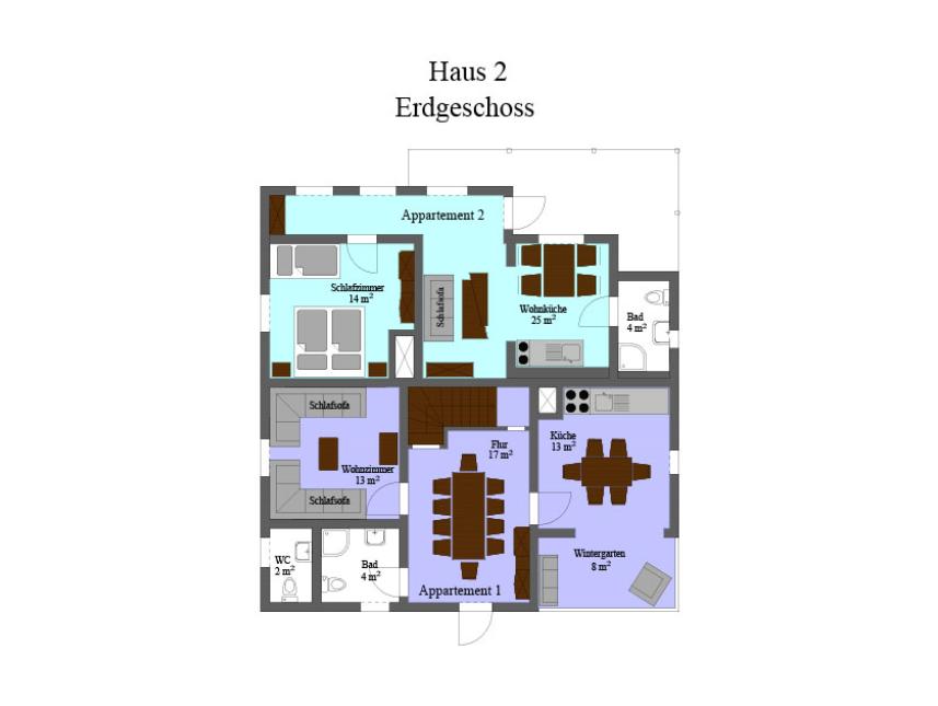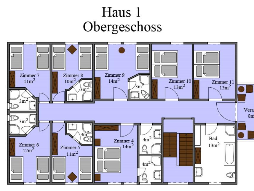 Haupt- u. Nebenhäuser zusammen max. 64 Personen