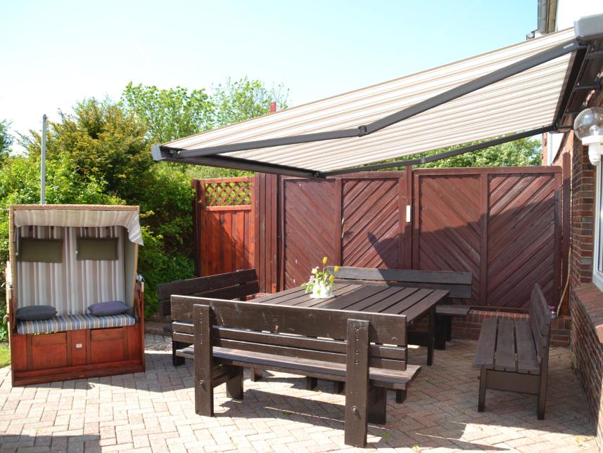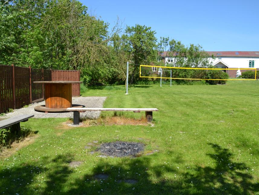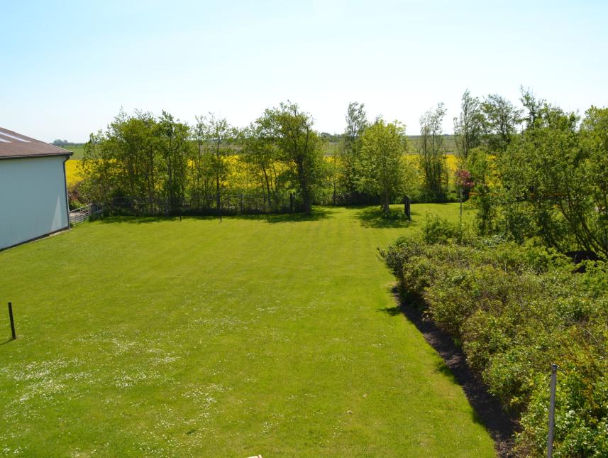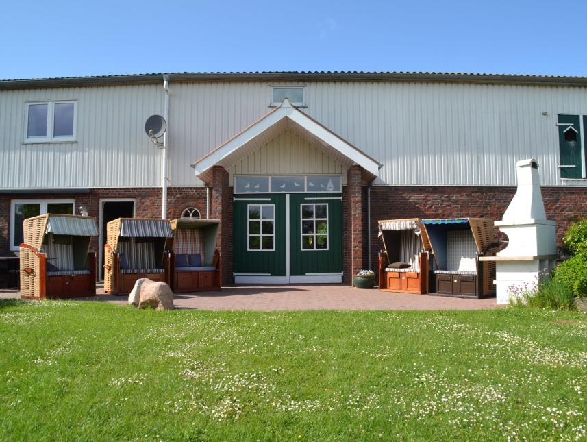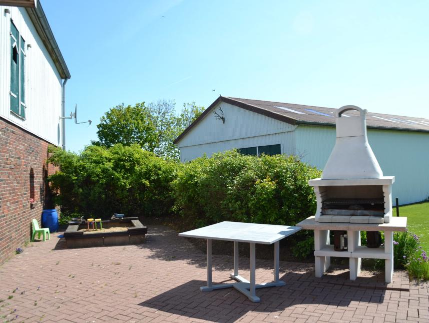 An der Südseite des Hauses befindet sich eine Terrasse (ca. 80 qm) mit Sitzmöbeln aus Holz, 5 Standkörben und einer Sandspielecke für kleinere Kinder. Im Sommer kann die große Dielentür geöffnet werden. Vorhanden ist außerdem ein größerer Garten (ca. 3000qm) mit Grillecke, Lagerfeuerplatz, Bolzplatz, Torwand, Schaukel und einem Volleyballnetz. Art der Versorgung: