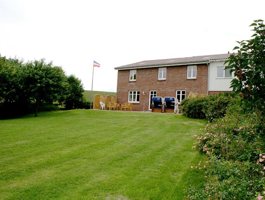 Sowohl an der Südseite als auch an der Westseite des Hauses befindet sich eine Terrasse (ca. 80 qm) mit Gartenmöbeln aus Holz, eine Sandkiste sowie 3 Strandkörbe.