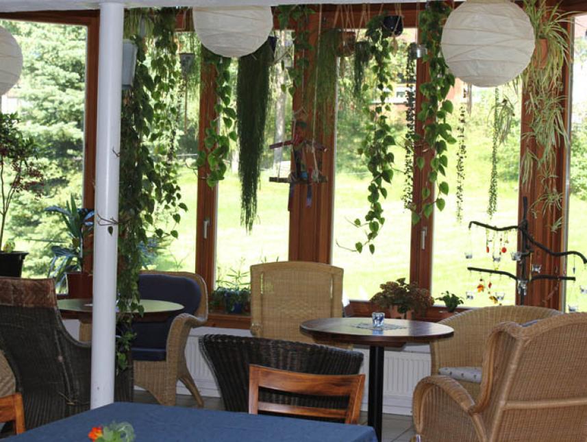 In unserem Gruppenraum können Sie auch mit 20 Personen gemeinsam essen, spielen, sich unterhalten oder einfach an der hellen Fensterfront sitzen und relaxen. Selbstverständlich stufenlos!