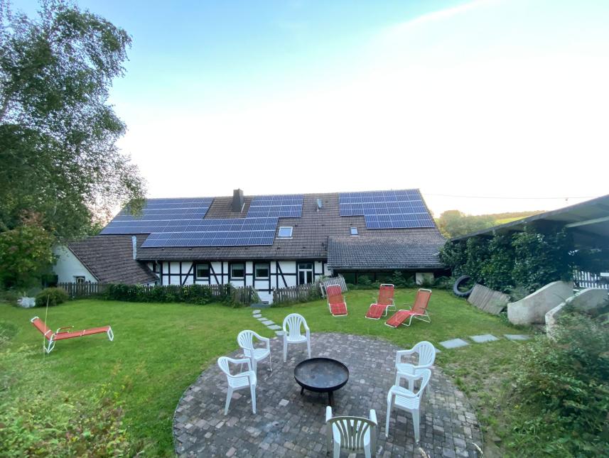 Der Parkplatz und die Bolzwiese finden Sie auf dem gegenüberliegenden 2000 m² großen Gelände. Das Haus hat im Garten ein Sauna-Haus und einen großen Feuerplatz fürs Lagerfeuer. Neben dem Saal finden Sie einen Art Biergarten der auch ca. 60 m² umfasst und mit Bierzeltgarnituren bestückt ist. Schauen Sie Sie sich die Bilder an. Art der Versorgung:
