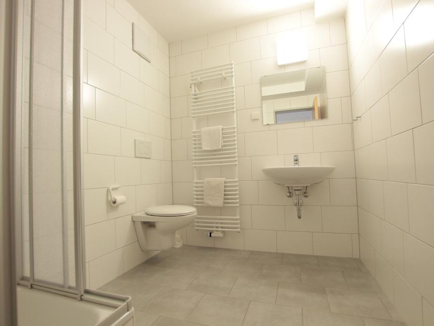 Die meisten Zimmer sind mit Du/WC ausgestattet, die Budgetzimmer haben ein Waschbecken. Hierfür gibt es separate und einzeln abschließbare Bäder auf der Etage.