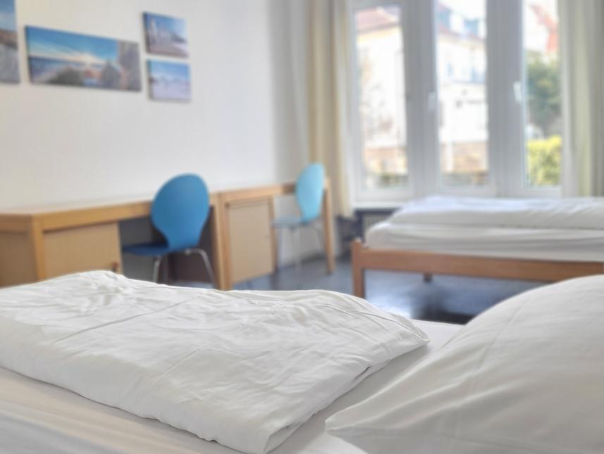 Das Jugendgästehaus besteht aus zwei villenartigen Häusern in ruhiger Nachbarschaft. Fast alle Zimmer sind mit Einzelbetten, Schränken und Schreibtischen ausgestattet.