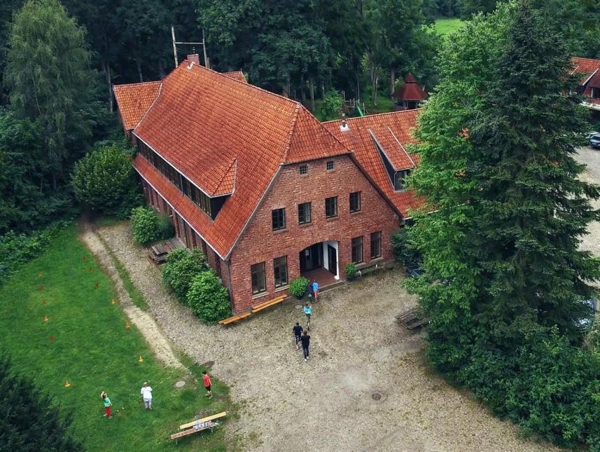 Jugendhof mit separatem Bettenhaus, umgeben von Wald- u. Wiesenflächen. Seminar- und Fachräume, Holzwerkstatt, großes Außengelände, Kicker, Billard, Hochseilgarten, Spiel- u. Bolzplatz, eigener Bootsanleger, eigene Angebote für Schulklassen.