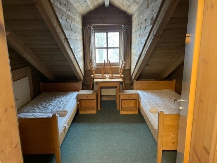 6 DZ im Zentralgebäude (12 Betten), 4 Häuser mit jeweils 12 Betten, große moderne Edelstahlküche, Spielhaus, Sanitärhäuser, Zeltplatz für 60 Personen