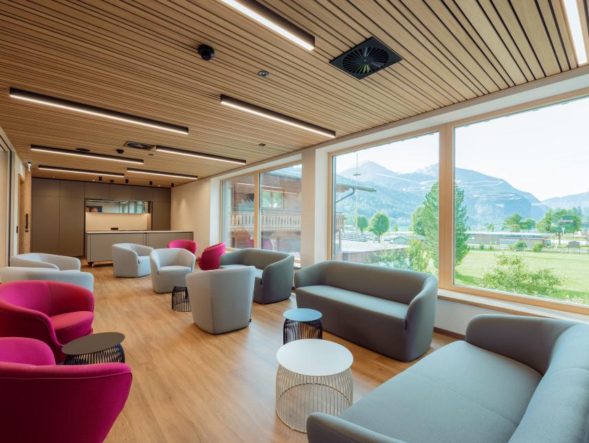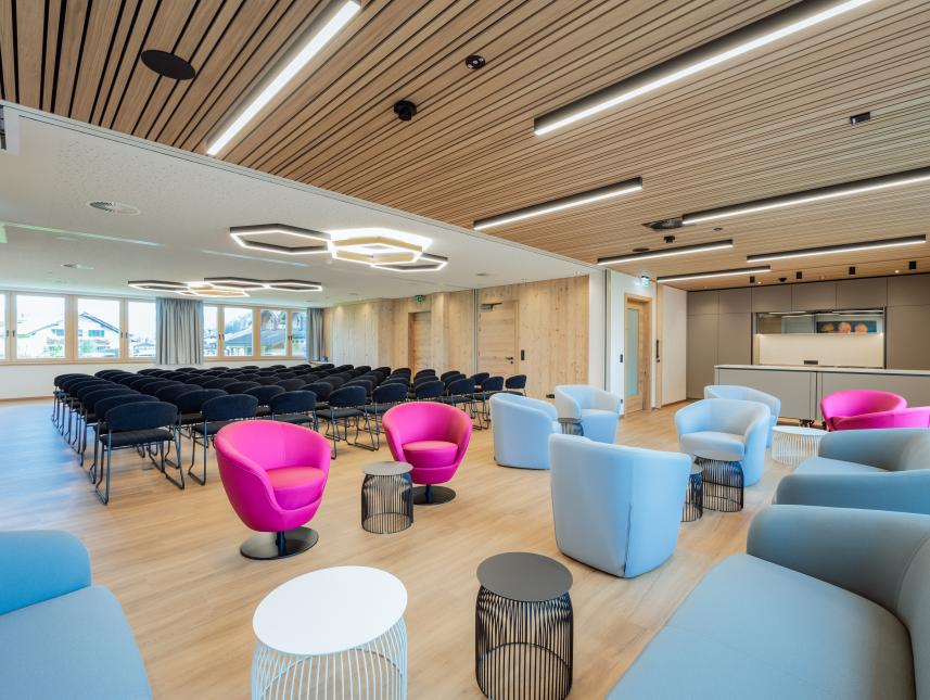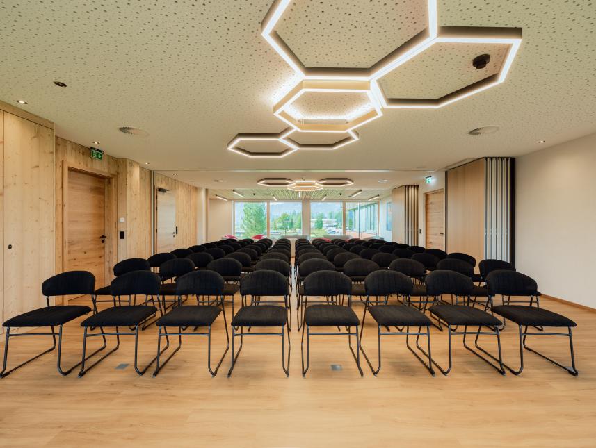 Der gemütliche kleine Nebenraum (Skistüberl) bietet Platz für ca. 12 Personen. Die Karlingerlounge (27 m²) zum Entspannen, Erholen und Besprechen ist mit SAT-TV, WLAN (kostenlos) und 15 Loungesessel ausgestattet. Unser neuer schallisolierter Seminarraum mit 63 m² ist voll ausgestattet mit 75 Zoll Bildschirm, Bose Surround Anlage, Kühlschrank, Flipchart, frei verschiebbar Bestuhlung und einer Panoramaglaswand mit großer Schiebetür. Das Haus verfügt ferner über eine großzügig ausgestattete Gewerbeküche, eine weitere voll ausgestatte Selbstversorgerküche sowie eine Saunakabine für 6 Personen mit großem Ruheraum, Dusche und WC und eine Infrarotkabine für 2 Personen.