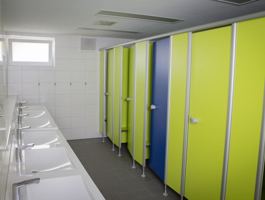 Toiletten teilweise auf den Etagen, dazu gehören noch eine Teeküche und ein Aufenthaltsraum sowie ein separater Speiseraum.
