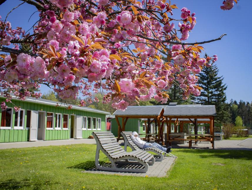 - von Mai bis September 18 Bungalows mit je zwei Sechs- und einem Zweibettzimmer sowie einem Aufenthaltsraum, Sanitäranlagen im separaten Gebäude (Einzelduschen)