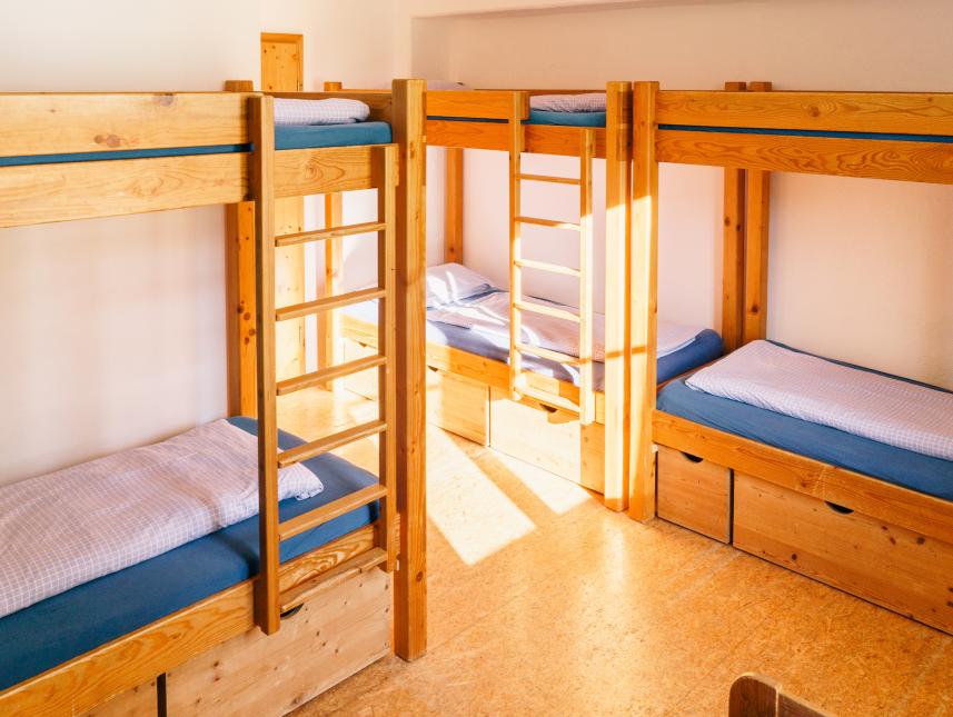 Unsere Zimmer sind mit 4 bis 8 Betten ausgestattet; auch 4 Einzelzimmer teils mit Dusche sind vorhanden.